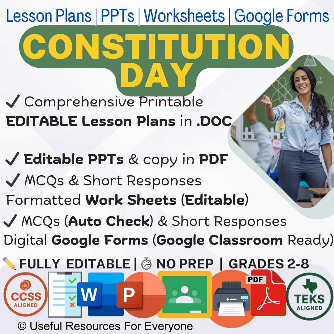 - COMPREHENSIVE UNIT: Covers all core components required for Constitution Day education across 10 detailed lessons.