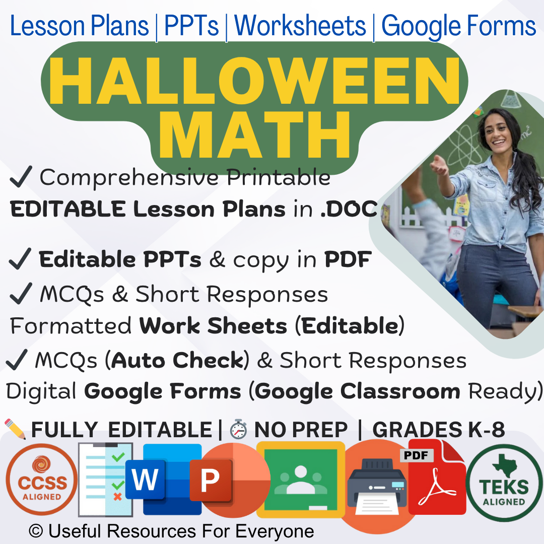 - 6 Editable Lesson Plans (13 pages, .DOC format): Dive deep into reviewing key skills (e.g., addition/subtraction, graphing, problem-solving, money math) using fun, seasonal scenarios with meticulously detailed plans covering Learning Objectives, Teaching Methodology, Thematic Problem-Solving Activities, Hands-on Activities (e.g., sorting/counting candy, spooky math games), and Thought-Provoking Homework. These plans are your roadmap to success, ensuring a seamless and effective instructional journey through high-engagement math review.