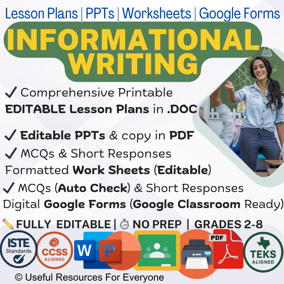 - ✅ Save Valuable Time: Say goodbye to endless planning and prep! This done-for-you bundle provides everything you need to teach Informational Writing with confidence and ease.