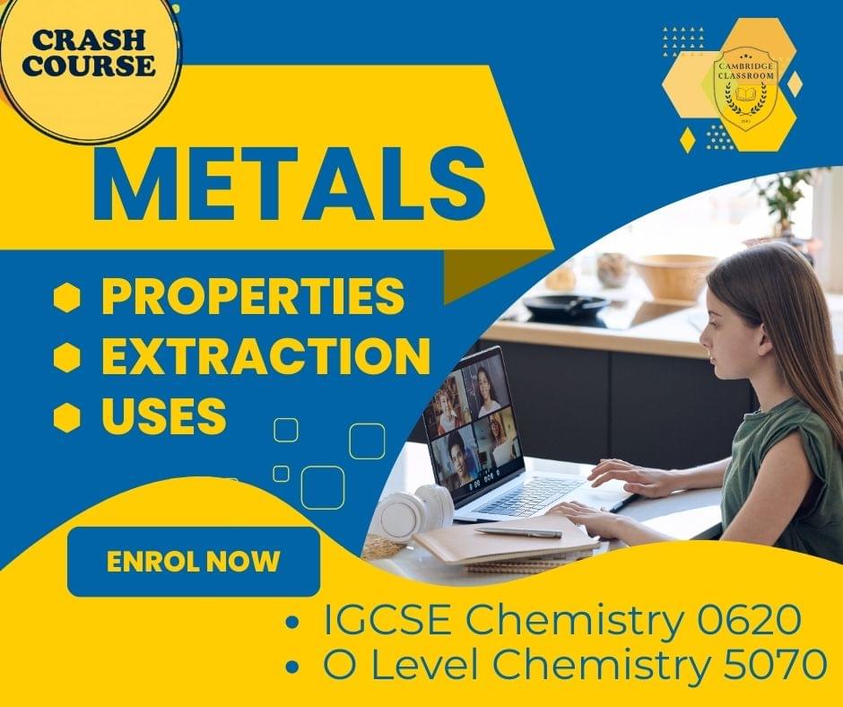 Meta Description: Master metals with our comprehensive e-course. Explore their properties, reactions, and significance to excel in O Level & IGCSE Chemistry!